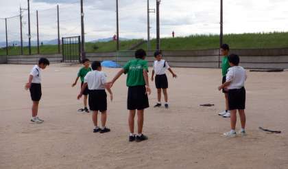 画像は、野球部です。大きな声でかけ声をかけながら、活動しています。野球部は、いつも元気いっぱいです!