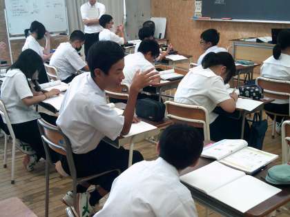 これまで学んできた文字を使い、どのように表現できるかを考えていました。互いに相談しながら考えを深めたり、教え合ったりしながら、考えを深めています。