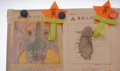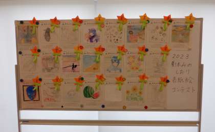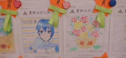 休み明け後の芝中風物詩「2023しおり表紙絵コンテスト」の結果です。優秀な作品が、学年フロアに展示してあります。