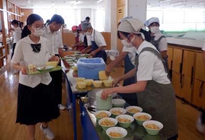 2年生の配膳の様子です。手際よく、短時間に配膳。ゆっくりご飯を食べることができますね。
