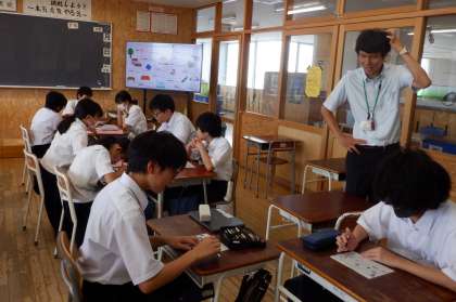 単語は大事です 1−B英語 公開日 2023/09/05 更新日 2023/09/05 芝園の一日 9月5日(火) 2限 1−Bの英語の授業風景です。今日はALTの先生と一緒に、ゲーム形式で単語の練習をしています。単語は英語を学習する上で、たいへん重要です。楽しく、そして確実に覚えていきましょう!
