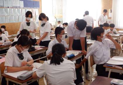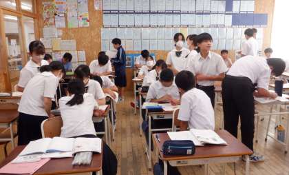 2−Bの英語の授業風景です。今年度、本校では「アクティブな授業づくり」を研修のテーマとして、授業改善に取り組んでいます。