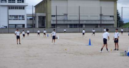 雨が降る前に・・・ 2−A体育 公開日 2023/09/06 更新日 2023/09/06 芝園の一日 9月6日(水) 1限 2−Aの体育の授業風景です。ソフトボールの学習をしています。9:00過ぎまでは何とか外で活動できました!