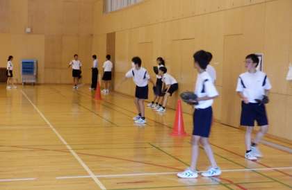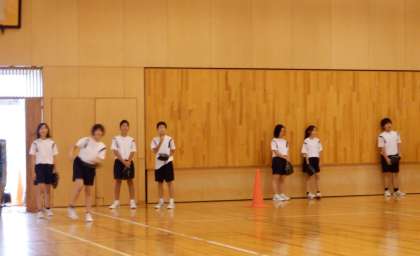 9月6日(水) 2限 1−Cの体育の授業風景です。外は雨が降っているので、体育館内での活動です。
