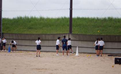 バッティング練習 1−C体育 公開日 2023/09/08 更新日 2023/09/08 芝園の一日 9月8日(金) 2限 1−Cの体育の授業風景です。昨日の校外学習の疲れを見せることなく、元気に活動をしています。いいぞ、1年生!