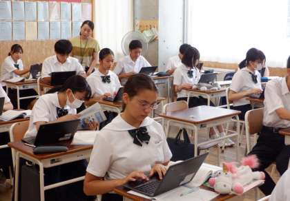 端末を活用して 3−B国語 公開日 2023/09/08 更新日 2023/09/08 芝園の一日 9月8日(金) 2限 3−Bの国語の授業風景です。魯迅の「故郷」を学習しています。今日は、端末を活用して登場人物の相関図を作成しています。