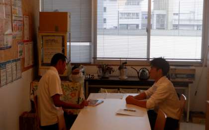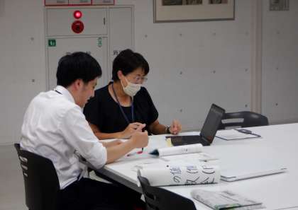 部活動も終わって生徒が下校した後、教育実習生は担当教諭と打ち合わせをしています。いよいよ明日が研究授業です。これまでの実習で学んだことを生かして、魅力ある授業を目指してください。頑張って!