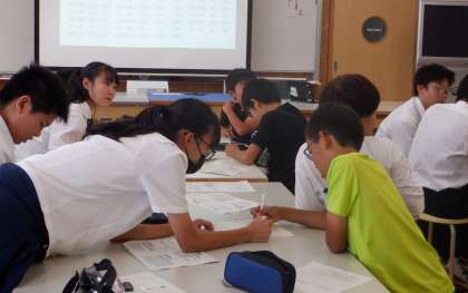 小中合同学校保健委員会 その2 公開日 2023/09/22 更新日 2023/09/22 芝園の一日 9月22日(金) 「スポーツと栄養」を考える講座です。本校の栄養教諭の先生が講師です。小学生と中学生が一緒に話し合っています。