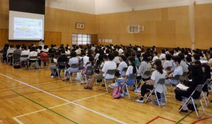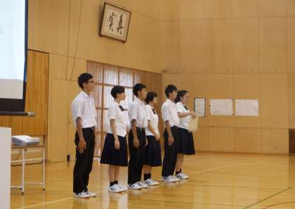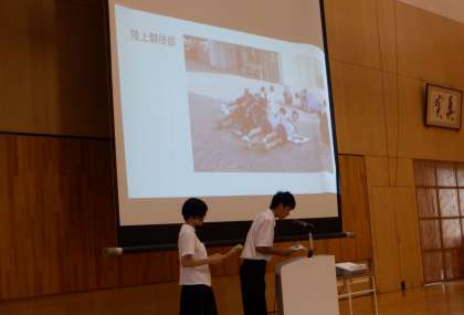統一学校公開日 その4 公開日 2023/09/23 更新日 2023/09/23 芝園の一日 9月23日(土) 授業を参観した後は、学校説明をしました。部活動は、代表の部長6名が紹介をしました。分かりやすく、元気いっぱいの説明に、終わった後はたくさんの拍手をいただきました。