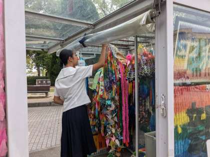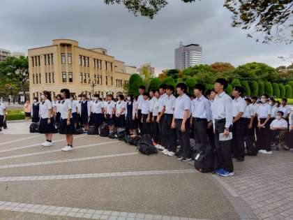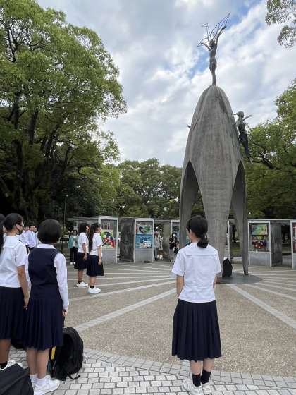 平和資料館を見学した後、平和セレモニーをしました。平和宣言を全員で読み上げました。最後にがっしをしました。