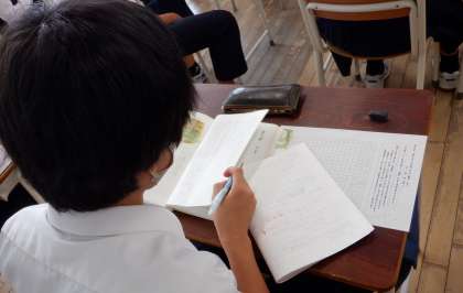 家族について考える 2−A国語 公開日 2023/10/03 更新日 2023/10/03 芝園の一日 10月3日(火) 5限 2−Aの国語の授業風景です。「字のない葉書」「盆土産」を学習して、それぞれが「家族」について考えたことをまとめています。