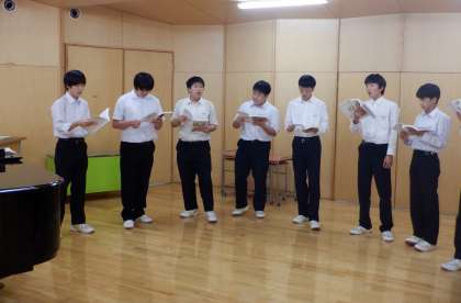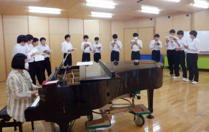 合唱コンクールに向けて 3−A音楽 公開日 2023/10/06 更新日 2023/10/06 芝園の一日 10月6日(金) 3限 3−Aの音楽の授業風景です。合唱コンクールの練習をしています。3−Aは「友〜旅立ちの時〜」を歌います。修学旅行中のバスの中でも、練習に励んでいた3−A。気合いたっぷりです!