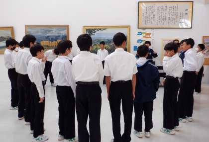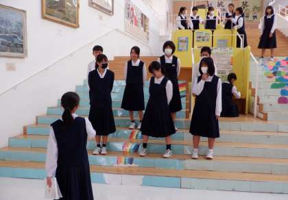 合唱練習 その1 公開日 2023/10/12 更新日 2023/10/12 芝園の一日 10月12日(木) 4限 本日の合唱練習の様子です。画像は、1−Cです。1−Cは「COSMOS」を歌います。今日は大階段での練習。伸び伸び歌っています。