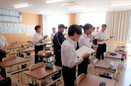 合唱練習 その3 公開日 2023/10/12 更新日 2023/10/12 芝園の一日 10月12日(木) 4限 2−Cの様子です。「YELL」を歌います。2−Cは、歌う前にみんなでウォーミングアップをするなど、工夫した練習をしています。