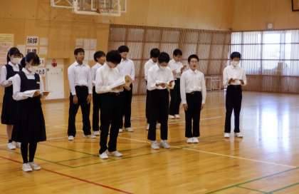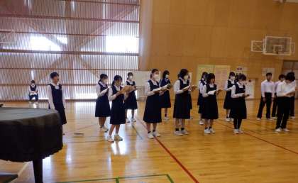 合唱練習 その4 公開日 2023/10/12 更新日 2023/10/12 芝園の一日 10月12日(木) 4限 3−Dの様子です。今日は体育館での練習です。リーダーを中心に、言葉の発音や歌い出しの音量など、細かなところもチェックして完成度を高めています。