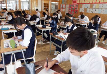 3−Bの社会の授業風景です。憲法について学習しています。