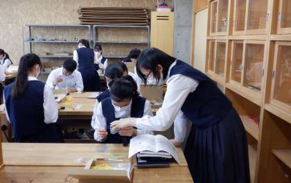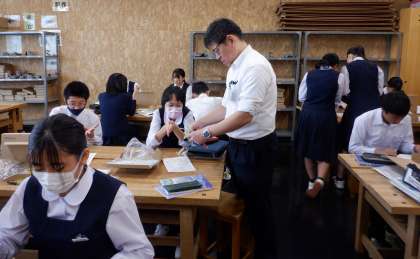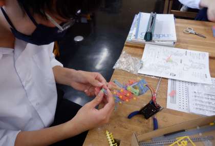 3−Dの技術の授業風景です。ロボット製作に四苦八苦です!