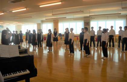 明日はリハーサルです その4 公開日 2023/10/17 更新日 2023/10/17 芝園の一日 10月17日(火) 放課後 3−Dの練習の様子です。「ヒカリ」を歌います。この曲のもつ曲想を味わいながら、表現を工夫して歌っています。