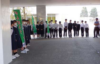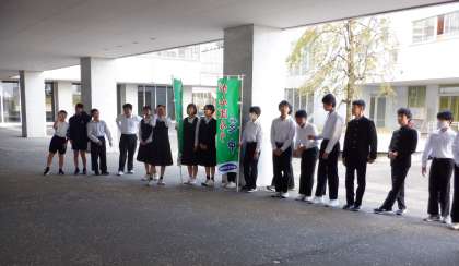 今日は前期生徒会執行部が行う最後の「あいさつ運動」となりました。80名を超える多くの生徒が参加してくれて、生徒玄関ではいつもよりも元気なあいさつが交わされていました。