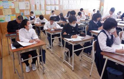 グラフの書き方 1−C理科 公開日 2023/10/19 更新日 2023/10/19 芝園の一日 10月19日(木) 2限 1−Cの理科の授業風景です。理科でのグラフの書き方について学習をしています。様々な決まりがあることの説明を、集中して聞いています。