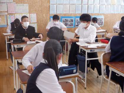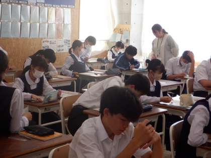 一次関数の利用 2−B数学 公開日 2023/10/20 更新日 2023/10/20 芝園の一日 10月20日(金) 2限 2−Bの数学の授業風景です。1次関数の利用の問題に取り組んでいます。どんな式ができるか・・・集中しています!