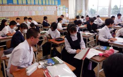 ウォーミングアップ 1−B英語 公開日 2023/10/23 更新日 2023/10/23 芝園の一日 10月23日(月) 1限 1−Bの英語の授業風景です。ウォーミングアップとして、ペアで英会話の練習をします。楽しい雰囲気で授業が始まります!