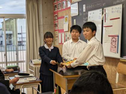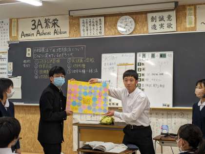 合唱コンクールを終えて、1年生から3年生へ感謝のメッセージを送りました。1年生は、3年生の合唱の練習を見学したり、自分たちの合唱についてのアドバイスをもらったりして、初めての合唱コンクールに臨みました。おかげで、最高の合唱を創り上げることができました。