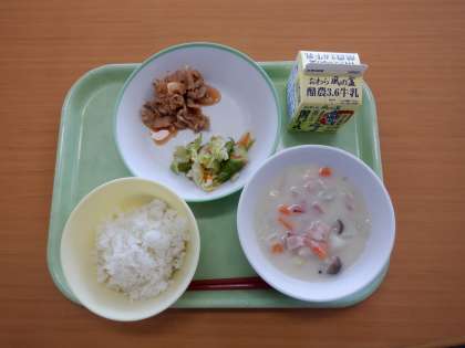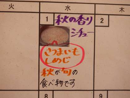 今日から11月がスタートしました。シチューは、さつまいもやしめじなど秋の食材たっぷりで美味しかったです。