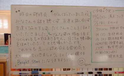 2学年のフロアには、学校訪問研修を終えて学年主任からのメッセージが書かれていました。学びに向かう皆さんの姿勢、互いを認め合う学級の雰囲気、これからも大切にしていきましょう!
