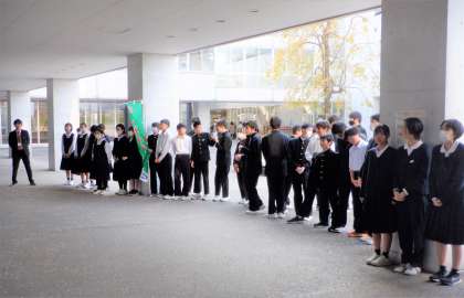 今朝のあいさつ運動には、100名を超える生徒が参加しました。パサージュには、爽やかなあいさつの声がこだまして、気持ちのよい朝となりました。
