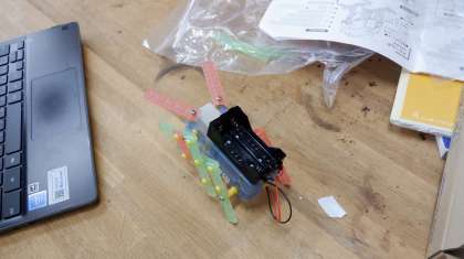 うまく動くかな 3−D技術 公開日 2023/11/06 更新日 2023/11/06 芝園の一日 11月6日(月) 2限 3−Dの技術の授業風景です。ロボット製作もいよいよ大詰め。自作したロボットの動きをチェックしています。なかには、不思議な歩行をするロボットも・・・。でもみんな楽しそう!