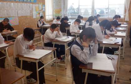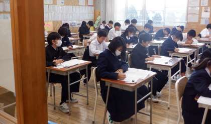 中教研学力調査1日目 1学年 公開日 2023/11/07 更新日 2023/11/07 芝園の一日 11月7日(火) 1限 今日と明日は、中教研学力調査です。これまで学習したことがどれだけ理解できているか、力を試すよい機会です。十分準備をして、臨みましょう。画像は1年生です。1年生にとっては、初めての学力調査です。最後まで集中して取り組んでいます。