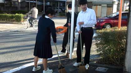 環境委員会、美化委員会を中心に、落ち葉掃きをしてくれています。この時期、さくら通りは落ち葉でいっぱいになります。みんなの活動が、街の環境美化につながります。ありがとうございます!