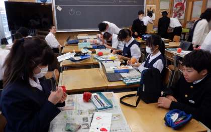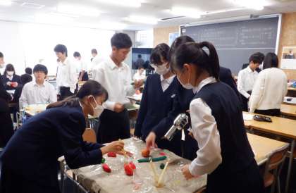 粘土で作ろう 1−B美術 公開日 2023/11/13 更新日 2023/11/13 芝園の一日 11月13日(月) 1限 1−Bの美術の授業風景です。「粘土で作ろう〜野菜・果物〜」という課題に取り組んでいます。本物と見間違える作品にびっくりです。