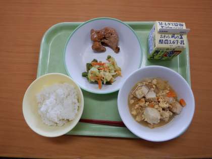 今日の給食 公開日 2023/11/15 更新日 2023/11/15 芝園の一日 11月15日(水) 今日の給食メニューは、 ・ごはん ・牛乳 ・照り焼きチキン ・厚揚げの卵とじ ・野菜ソテー です。 朝晩が冷え込み、体調を崩しやすい時期になっています。しっかり食べて、体調管理に努めましょう。