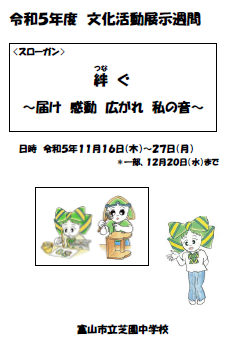 「文化活動発表会」の一環として、10月末には「合唱コンクール」を実施しました。明日からは「文化活動展示週間」として、生徒作品を展示します。進路懇談会・授業参観等で来校された際にご覧ください。