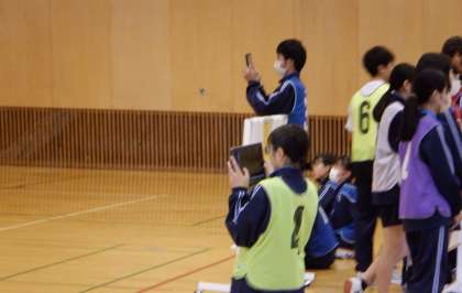 バスケットボール 2−A体育 公開日 2023/11/15 更新日 2023/11/15 芝園の一日 11月15日(水) 1限 2−Aの体育の授業風景です。バスケットボールの学習をしています。互いのプレーを端末で記録して、振り返りに活用しています。 体育は楽しいね!