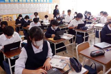 端末を活用して 1−B社会 公開日 2023/11/16 更新日 2023/11/16 芝園の一日 11月16日(木) 1限 1−Bの社会の授業風景です。奈良時代から鎌倉時代に学習したことを、ベン図を使ってまとめをしています。端末を活用すると分かりやすいですね。