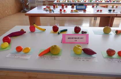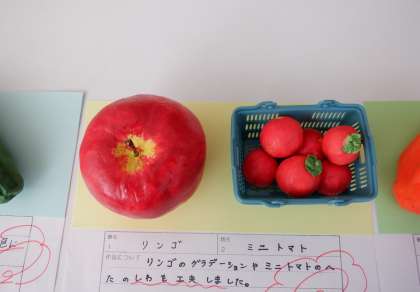 文化活動展示週間 その2 1年生 公開日 2023/11/16 更新日 2023/11/16 芝園の一日 11月16日(木) 1年生の粘土作品です。バスケットに入ったプチトマト。思わず食べてしまいそうになりますね。