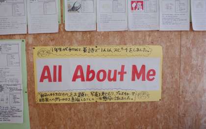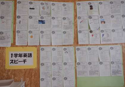 1年生の英語の発表資料です。「私のお気に入り」という課題で、中学校では初めての英語のスピーチです。