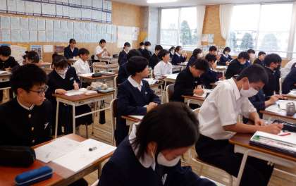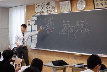 2−Cの理科の授業風景です。天気や気象現象について学習をしています。天気図や気象は、自分の生活に密着しています。授業で学んだことをもとに、疑問に思うことなど自主的に学びを深めていきましょう。
