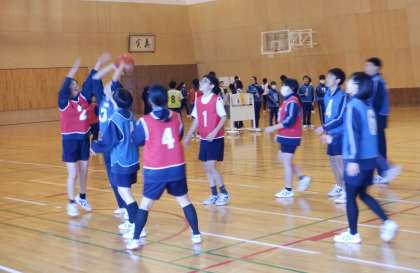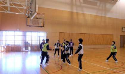白熱したプレー 2−A体育 公開日 2023/11/22 更新日 2023/11/22 芝園の一日 11月22日(水) 1限 2−Aの体育の授業風景です。バスケットボールの学習をしています。ずいぶん上達して、パス回しも上手くなりました。楽しそうです!