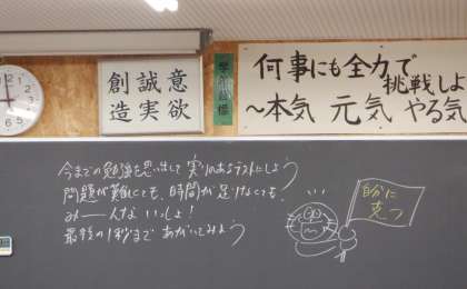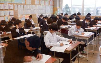 期末考査1日目 1学年 公開日 2023/11/24 更新日 2023/11/24 芝園の一日 11月24日(金) 1限 今日から期末考査が始まりました。今学期の学習内容がどれだけ理解できているか、確認をしましょう! 画像は1年生です。最後まで集中しています!