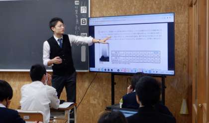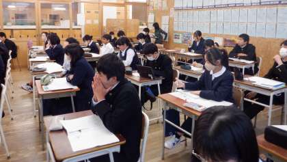 2−Cの理科の授業風景です。湿度や水蒸気量を求める問題に、苦手意識をもっている生徒もいるようです。わかるまでとことん見直しをしましょう!