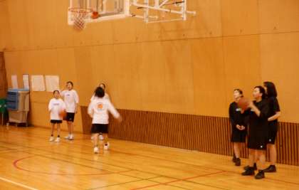 バスケットボール部の活動の様子です。体育館は冷え切っていますが、部員たちは熱いです!