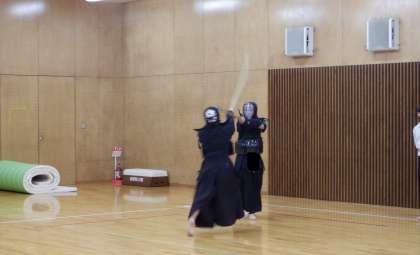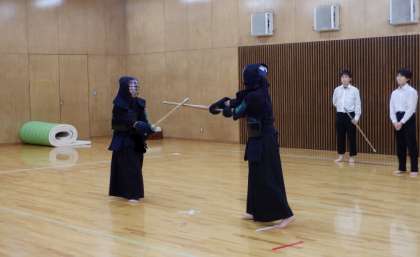 剣道部の活動の様子です。今日は、試合形式の稽古をしています。緊張感が漂っていますね。