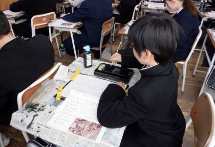 いろはにほへと 清書 1−A国語 公開日 2023/12/04 更新日 2023/12/04 芝園の一日 12月4日(月) 2限 1−Aの国語の授業風景です。今日は「いろはにほへと」を毛筆で書いて、提出となります。生徒は気合い十分!