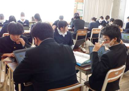 端末を活用して 3−C家庭科 公開日 2023/12/04 更新日 2023/12/04 芝園の一日 12月4日(月) 2限 3−Cの家庭科の授業風景です。「高齢になると」という課題で学習をしています。各班で話し合ったことが、端末を活用すると一度に簡単に見ることができます。便利ですね!