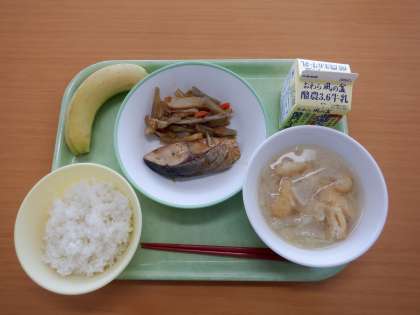 ・具だくさん汁 ・茎わかめのきんぴら ・バナナ  です。