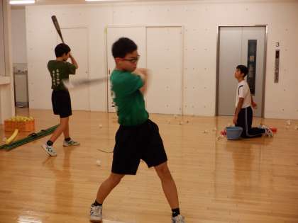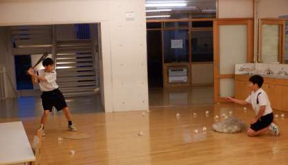 野球部です。お互いに声をかけあって、よりよい練習となるように工夫しています。